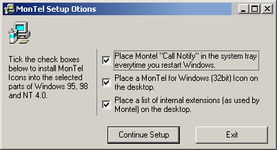 When running Setup.exe to set up the 32bit client of MonTel users will by default be presented with the following options screen: