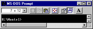 This topic reviews the suggested properties of the DOS Box (usually for a BAT or PIF file) in which to run the MonTel Server. To select the properties use the button third from the right on the appropriate DOS box. In this eample we are running the MonTel Server in a DOS Box. However the settings will also work to set up a PIF file (or shortcut or LNK file) for a BAT file or for the SERVER.EXE program itself.