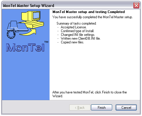 At this stage you now new to install the MonTel services on the MonTel server machine, add new users to the system and install the client software on each of the users computers.